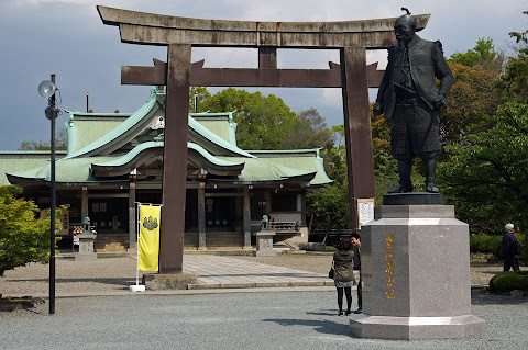 Statue of Toyotomi Hideyoshi in front for the Toyokuni Shrine that commemorated him.